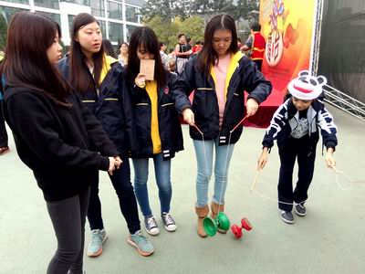 除此之外,本次活动最大的特色是逛“庙会”。本次多元文化节活动采用中国传统“庙会”的形式展现,为学生准备了充满复古风情的“通关文牒”和“银票”等道具。学生参与互动项目可获得印章并换取“银票”,根据获得印章的数量评定等级,得到状元、榜眼、探花等不同称号。拿着“银票”,留学生们不仅可看抖空竹、举刀等老北京杂耍,还能亲自体验滚铁环、跳皮绳等中国传统运动项目。此外,主办方还为留学生们准备了饺子、大碗茶等北京小吃;同学们还可以拿着“银票”来一尝特色美味。这种独具特色的设计,将中国文化从一个个抽象的符号变成了妙趣横生的零距离体验,吸引着留学生们争先恐后地参与其中。在参与中他们也领略到了中国文化的内涵,加深了对北京传统文化的理解。