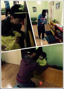 陪着妍夏玩了半个小时左右,我注意到在小滑梯旁一直安安静静站着的一个小男孩,一眼就能看出来他得了白化病。后来知道,这个小男孩叫朋朋,出生于2007年8月16日,患有先天性白化病,还有自闭症,无法正常吃饭,只能吃流食,还在胃上穿了个孔,每天营养液从这个孔里面射入进去……他也无法自己行走,脚完全没有办法使劲儿,只能整天靠双手爬着行走,然后用双手抓着稳固的工具一直保持站立的姿势,以训练自己行走的能力。他一个人孤零零的、抓着滑梯栏杆一直默默站在那里,让人看了特别心酸。我主动走过去陪他,才发现他也不会说话,手和眼睛不停地动着努力试图表达。于是我只好扶着他慢慢地练习走路,过了一会儿他竟然可以自己走好几步,我的嘴角也不自觉地上扬好几分,心里觉得很欣慰。后来我觉得他应该很累了,就把他抱在怀里直接坐在了地上,然后轻拍着他的后背,用一些简单的拟声词逗他玩儿。我张着嘴一直出声音,用手掌不断轻拍自己的嘴,发出很有节奏感的“喔喔…”声;也许是因为这个声音简单,朋朋竟然也跟着我学会了发这个音!开始我以为是巧合,又试了几次之后,我发现他确实会跟着我说,能听得懂我说的话!当时心里那个激动啊!然后就又开始陪他走路又陪他休息…不知不觉,我们该离开了,虽然极其不舍,我还是把朋朋抱回到滑梯旁,静默了一会,轻轻对他说:“姐姐要走了,下次姐姐还会来看你的哦!”我冲他挥挥手,刚要说“再见”,只见他伸出一只手,挡在我的前面,像是要挽留我。我的眼睛一下子酸涩起来,又对他说:“要好好听‘妈妈’的话,要按时吃药,早日养好身体,姐姐会再来看你……”在恋恋不舍中,我们带着一份挂念,终于还是离开了。