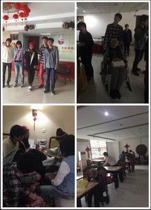 活动中,我们尽量多和老人们交谈,很注意地不提及他(她)们的儿女,不问及他们来敬老院的原因,努力作一个好的聆听者,多让老人们谈一谈他们的过去、以前的成就,希望用这样的陪伴方式让老人们此刻的生活少一些忧郁,多一些鲜活的色彩。除了陪老人们聊天,我们还为他们精心准备了节目。舞蹈、歌曲个个都是提前编排了很久的;表演过程中,把老人们邀请进来和我们同唱革命歌曲,更是把气氛推到了高潮。之后的折纸活动也拉近了我们和老人之间的距离。我们还为老人们捶背按摩,活络筋骨;虽然动作有些生疏,但老人们还是非常开心,连连称赞我们的细心和周到。