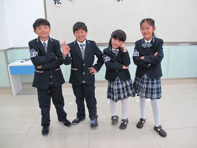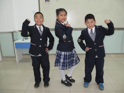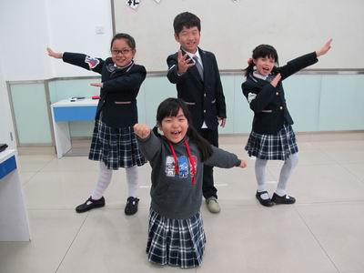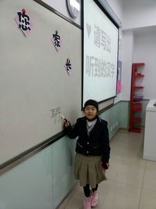 除了流利、准确的英文演讲,还有内容丰富、形式新颖的中文字词大赛。这场别具一格的字词大赛共设计了三个部分:汉字篇、词语篇和诗歌篇。在汉字篇,孩子们首先要写出主持人念到的汉字;其次要用给出的独体字或偏旁组成新的合体字;在词语篇,既有对四字成语和词语的考察,又涉及到特殊的ABB式形容词;在诗歌篇,孩子们则需把诗歌补充完整。总之,这场字词大赛不仅要求孩子们掌握基本的课本知识,还涉及到大量的课外内容;不但可以加强孩子们的基本功,更能促进孩子们学习的积极性。而孩子们自己早早地就期待比赛了,而且极其创意地给自己的队起了响亮的名字和独特口号:超人队——超人超人,势不可挡;闪电队——闪电闪电,势如闪电;学霸队——学霸学霸,永远学霸!