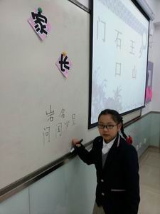 比赛中,当韩国小姑娘高秀炅把老子的名字“聃”字工工整整地写出来后,全场顿时哗然,在座的家长们都惊叹不已;因为这个字有点儿生僻,可能在座的有些家长都写不出来。更让大家叹为观止的是组字环节,孩子们一上台,用双眼扫描了屏幕上的独体字和偏旁后,奋笔疾书,刷刷地写出能组出的所有新字,很多组合方式连家长们都一时想不出来。在大多数家长只组成一两个字、甚至还没组出新字的时候,我们的选手竟已完成了六七个新字,让在座的所有人瞠目结舌,而又赞叹不已、掌声雷动。孩子们则个个神采飞扬、精神抖擞、越战越勇。不知不觉,比赛在激烈而紧张的气氛中拉下了帷幕,而我们的小队员们还没比拼够、还没过足瘾呢!