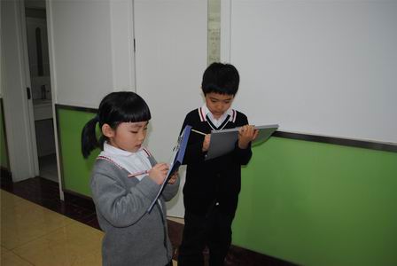 我们优秀的学生会代表们充分发挥自己的小小职能,每日做好上、下午两次的检查工作。瞧,这两位小代表正在认真地做着自己的工作,履行着自己的职责。