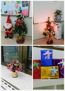 千姿百态的雪花,硕果累累的圣诞树,闪闪发光的小彩灯,各种各样的挂饰,伴随着孩子们的歌声与笑声,充分烘托出节日的气氛。在即将到来的新一年里,也祝愿我们的老师和孩子:烦恼被雪花清扫,幸福似彩灯闪耀,事业和学业如圣诞树般节节高!