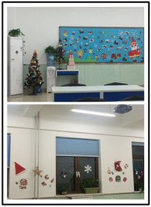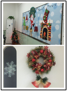 为迎接圣诞节及英语部小学开放日的到来,国际部小学阶段各班老师精心装扮教室、设计板报,每个班张灯结彩,圣诞的喜庆气息浓郁。