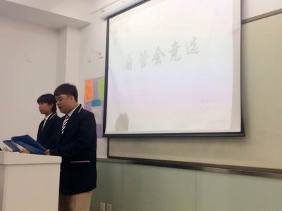 活动在庄重而热烈的气氛中开始。首先,主持人向大家隆重介绍了十位候选人及其基本情况;在竞选人演讲开始前,夏主任阐述了自管会工作的意义及此次竞选活动的目的,鼓励现场的候选人大胆参与、公平竞争,并强调成功与否并不重要,重要的是勇于迈出尝试的步伐,把握住每一个锻炼自我的机会。随后,十位候选人依次登台,讲述了自己对管委会的理解和认识、对学生中具体问题的总结和经验、对管委会发展所持的切实、中肯的建议、对未来发展与提升的大胆构想等等。候选人张晓可和张玉婧还就管委会的规划和发展问题进行了精彩的辩论,令在场所有人印象深刻。蒋校长也对选手们的演讲进行了点评。她首先对选手们给予了肯定,称赞选手们的表现很有国际中学生的风采,勇敢、自信、精彩,同时这也是国际部一贯坚持“世界公民”教育和“国际理解教育”的成果;自管会的成立对学生以后的出国留学生活也是大有帮助的,因为国外学校对学生的管理很大程度上都是依靠学生自己组建的管委会。蒋校长还指出了现代学生缺失的方面,即学生责任意识和世界公民意识还不够强,这也是学部筹建学生管委会的重要原因,让学生在自主管理中培养自己的责任意识和世界公民意识,以便能更好的融入到以后的国外学习和生活中。蒋校长的精彩讲话,鼓舞了在场的所有师生,会场内不时响起热烈的掌声。