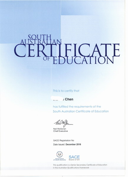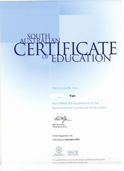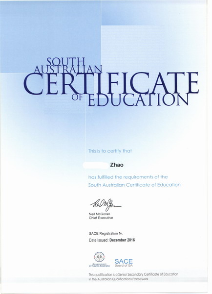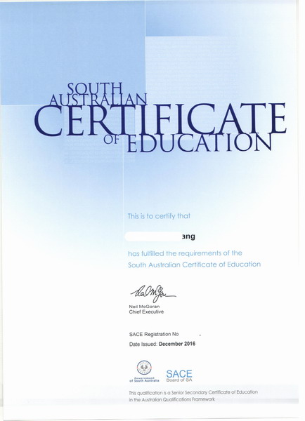 我校国际高中课程班学生参加澳大利亚SACE高考取得优异成绩:2016届学生100%取得澳大利亚南澳州政府教育部颁发的高中毕业证书;一批学生取得骄人的成绩,其中鞠涛娟和黄丞闵分别取得ATAR(高考成绩全世界排名)97.5%、91.65%的好成绩,根据预测,届时将有60%以上的学生被全球前100名的世界名牌大学录取。特此报喜。