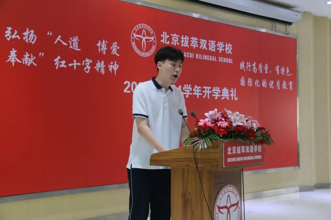 开学典礼上,北京拔萃双语学校艺术教育校长张宏民为拔萃学生们送来寄语,希望同学们能够积极参加各项艺术课程学习,发展艺术特长,提升艺术素养。北京拔萃双语学校全体师生唱国歌,读校训。教师和学生代表分别做了交流发言,表达了在未来的学习和生活中师生团结一心,勇于拼搏,努力为培养和成为担当民族复兴大任的时代新人、德智体美劳全面发展的社会主义建设者和接班人奋斗的决心。