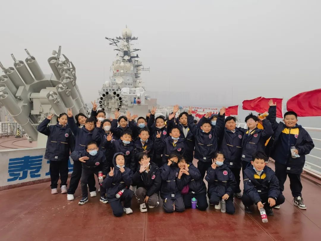 畅游海洋馆之后,同学们来到了天津泰达航母主题公园,登上了一艘真正的航空母舰。