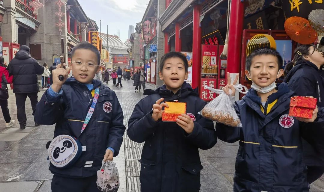这里的每个角落仿佛都在借着古老的文物诉说着丰富多彩的历史故事,泥人张彩塑、杨柳青年画无不体现中国的传统艺术与文化的魅力。古文化街中的古玩美食激发了同学们的无限热情,他们为自己和家人朋友挑选了精美的礼物。