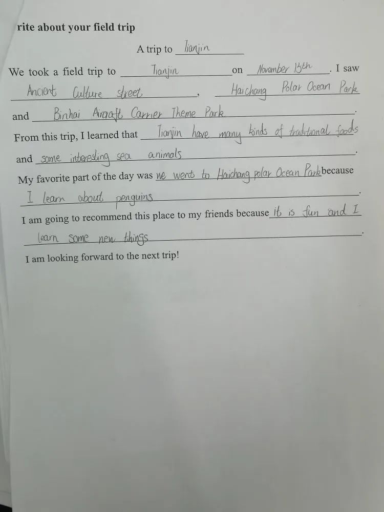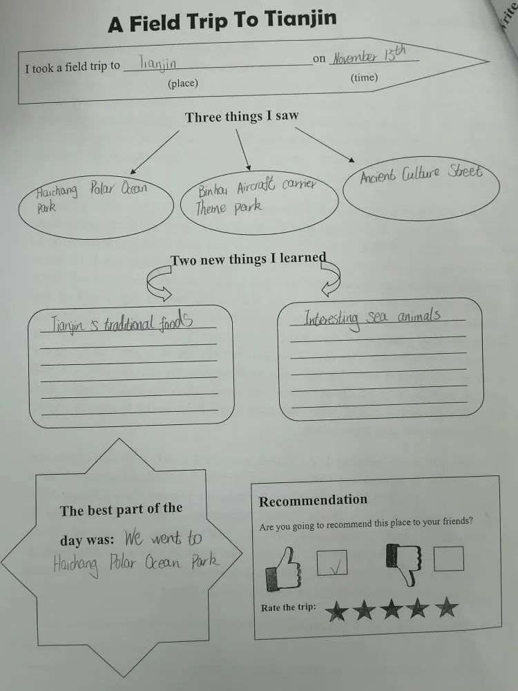 研学归来后,同学们将自己的收获呈现在研学册上。趣味盎然的海洋世界、展现科技实力的航母文化、浓郁地道的传统艺术为同学们展开一个更广阔的室外课堂,让学习成为更美好的体验。