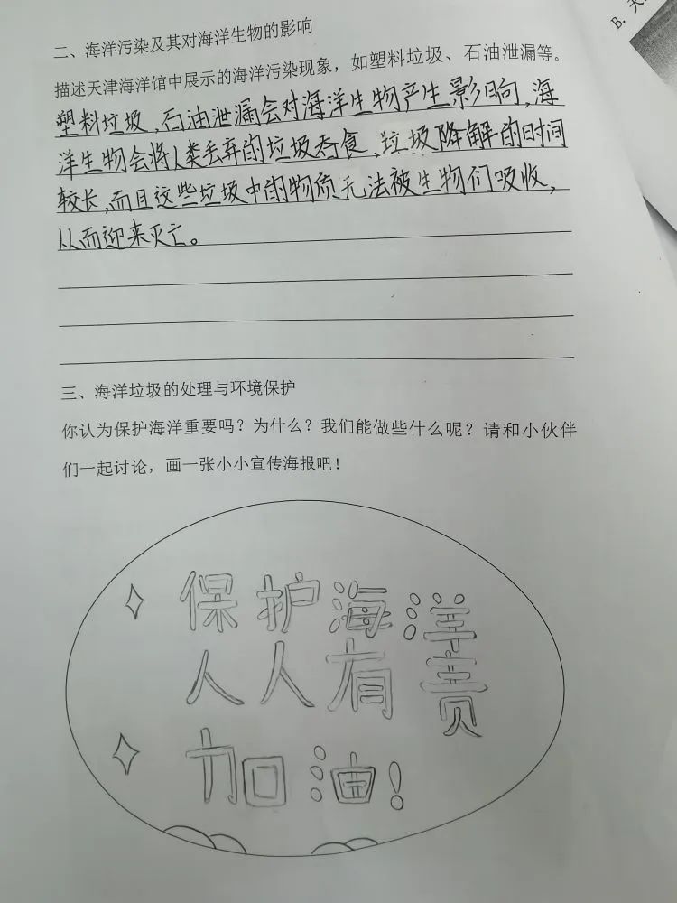 参观过后,同学们深深地感受到了大自然的伟大和宝贵,也明白了保护大自然的重要性,有同学认为,多种生物的灭绝正提醒着我们要保护环境,爱护大自然,杜绝海洋污染。