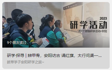 “读万卷书,行万里路”。安阳研学活动让同学们沉浸在中华文化的魅力中,体会中华文明的厚重,也让他们走出课堂,走出校园,行走在路上,得到充分的锻炼。