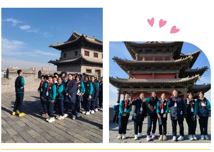 走在城墙上,仿佛能感受到历史的脉络在此回荡,同学们在这里了解古代文化历史,领略古城墙千年屹立不倒的风光,学习城墙背后的作用,也更加深刻了解了“关门打狗”其中的故事缘由。