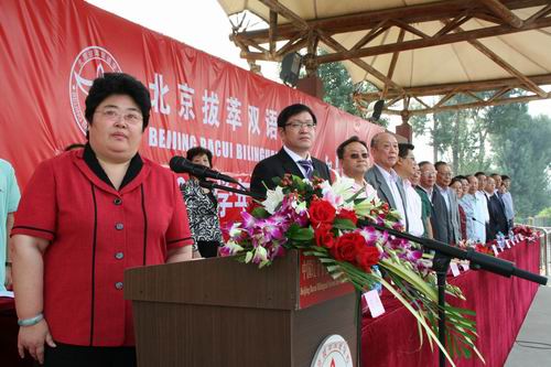 会上,中国红十字会总会原党组书记、常务副会长江亦曼发表讲话。江会长对社会各界的大力支持表示衷心感谢,并充分肯定了中国红十字基金会拔萃双语学校取得的巨大成绩,她对建校九年来,学校所显示出的勃勃生机和跨越式发展感到激动和骄傲。她希望,在新的学年,拔萃师生继续弘扬红会精神,使“人道、博爱、奉献”的精神进一步化为我们的行动,造福于人民和社会;希望拔萃的教师忠诚党的事业,师德高尚,恪尽职守,业务精湛,为国家和社会提供高水平高质量的服务;希望拔萃的同学们毋忘家长、老师和祖国的殷切期望,树立大志,刻苦学习,出类拔萃,成为国家新一代的栋梁之才。
