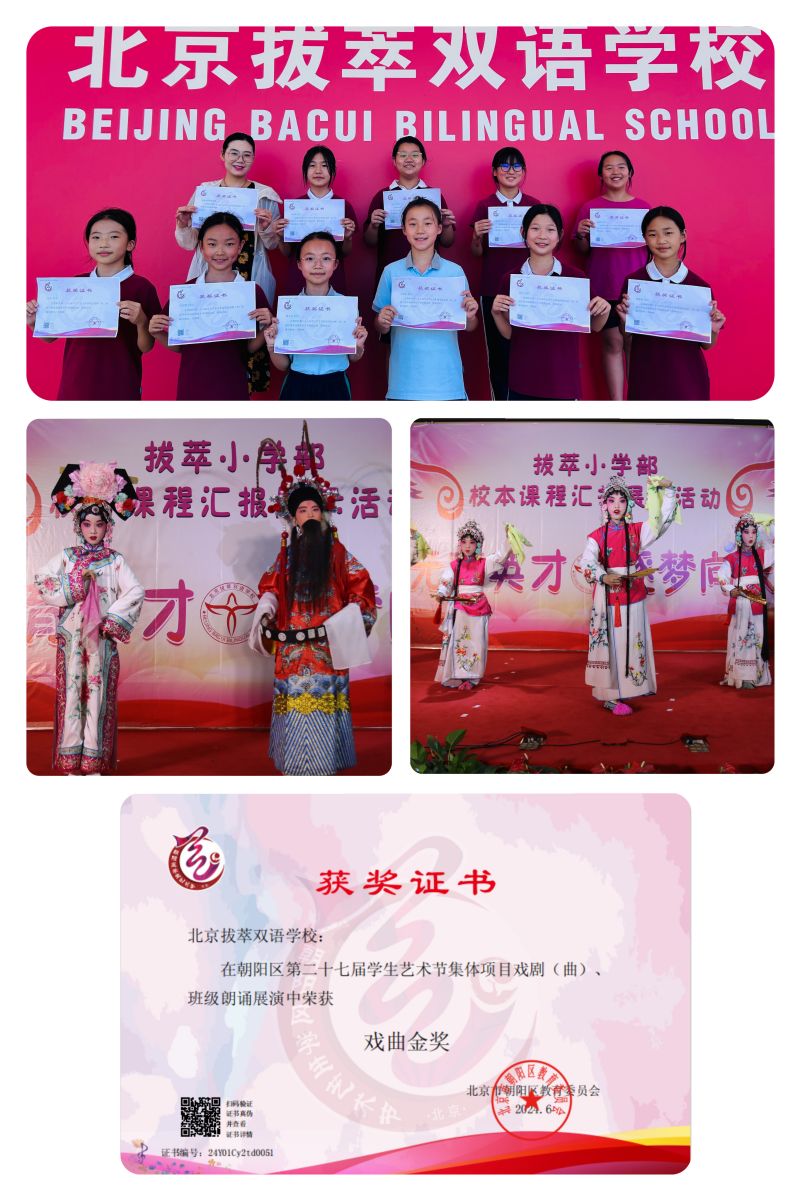 再传捷报----北京拔萃小学部京剧社团在戏剧(曲)展演中夺得金奖!