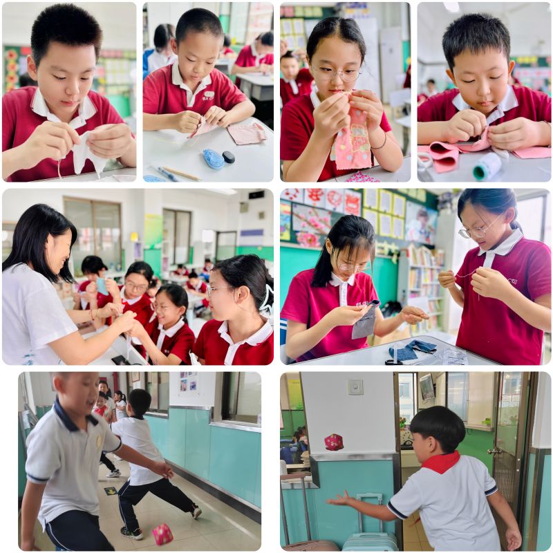大课间融入劳技,学生自制沙包,动手创意共舞。沙包飞舞添彩课间,欢声笑语编织校园乐章,展现素质教育新风采。