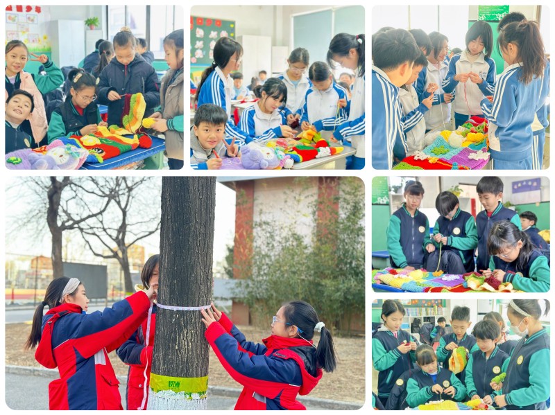 在劳动课的铃声中,学生们满怀热情地投入到这场特别的活动中。他们分组协作,精心测量每一棵大树的尺寸,设计着既保暖又美观的“毛衣”样式。从家中带来的各色毛线,在老师的帮助下,化作了学生们手中灵动的创意。在劳技课上,学生们跟随老师学习编织的基本技巧,将美术元素巧妙地融入其中。从简单的条纹到复杂的图案,每一件毛衣都凝聚着孩子们的独特创意与无尽爱心。