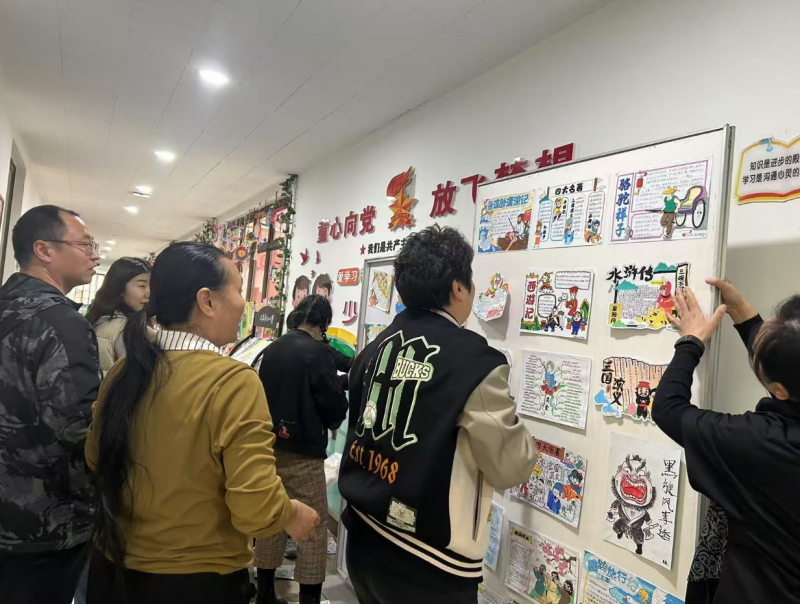 移步至阅读成果展区,立体展架上,手绘思维导图如藤蔓舒展,将中外名著复杂的人物关系抽丝剥茧,清晰展现。