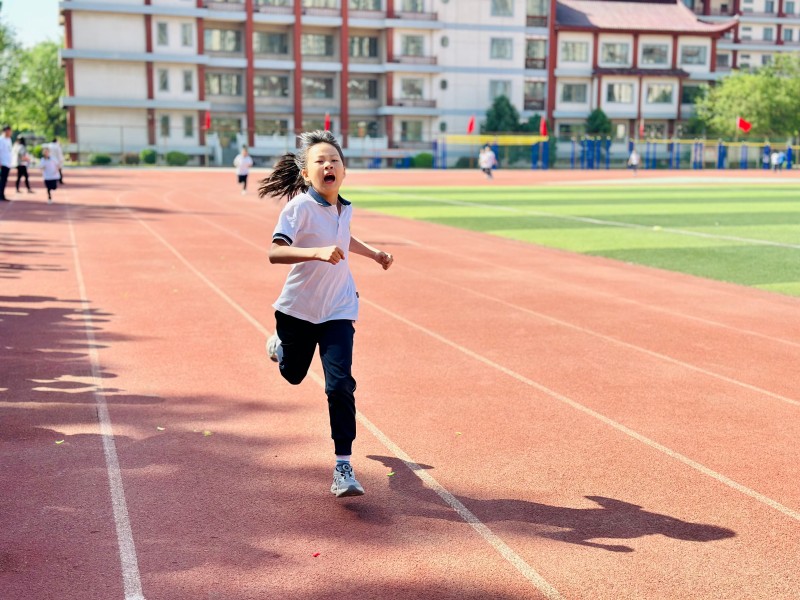 百米起跑线前,少年们绷成蓄势的弓弦。枪鸣刺破天际的刹那,六道身影如银箭离弦,翻飞的衣角在疾风中猎猎作响,羊角辫与短发梢都在气流中拉出锐利的轨迹。四百米弯道蒸腾着白雾,橡胶跑道被跃动的白鞋踏出闷雷般的轰鸣,掠过看台的每道剪影都掀起沸腾的声浪:"稳住呼吸!弯道加速!"少年们泛红的面颊滚落碎钻般的汗珠,在阳光下折射出七彩光晕,看台上挥舞的彩旗与呐喊声共振,将跑道织成一条灼灼生辉的光带。