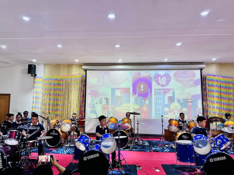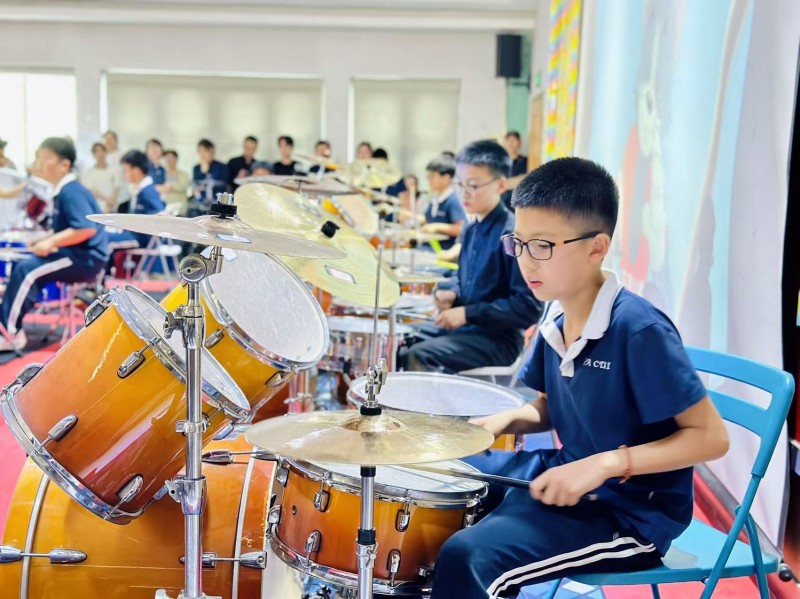 啦啦操队的《一起跳舞吧》活力四射,展现了青春的热情与朝气。架子鼓班的表演更是将现场气氛推向高潮,《Another One Bites The Dust-Queen》《危险派对》《稻香》三首风格迥异的曲目,展现了学生们扎实的节奏感和舞台表现力。